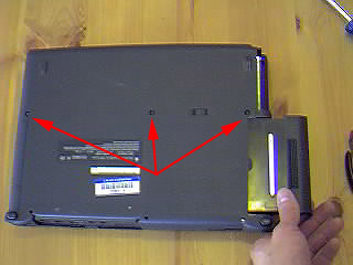 1. For this procedure you will need a Torx (star shaped) screwdriver. If you don't have one the right size you're not gonna get very far. If you do have one then remove the three screws from the underside of the unit. These screws hold the keyboard in place. Also release and remove the floppy drive and remove the torx screw on the rear of the PowerBook (next to the video output port).